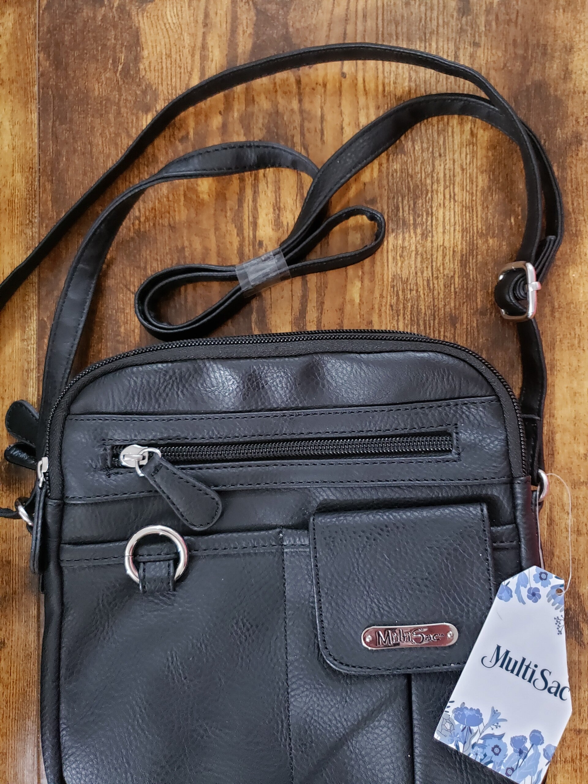 Brand New - Multi-Pocket Small Black Leather Vegan Cross Boddy Bag fStylish and lightweight, this Shoulder Bag is perfect for everyday use. Featuring multiple compartments, it keeps your essentials organized and easily accessible. Ideal for the modern woman on the go.