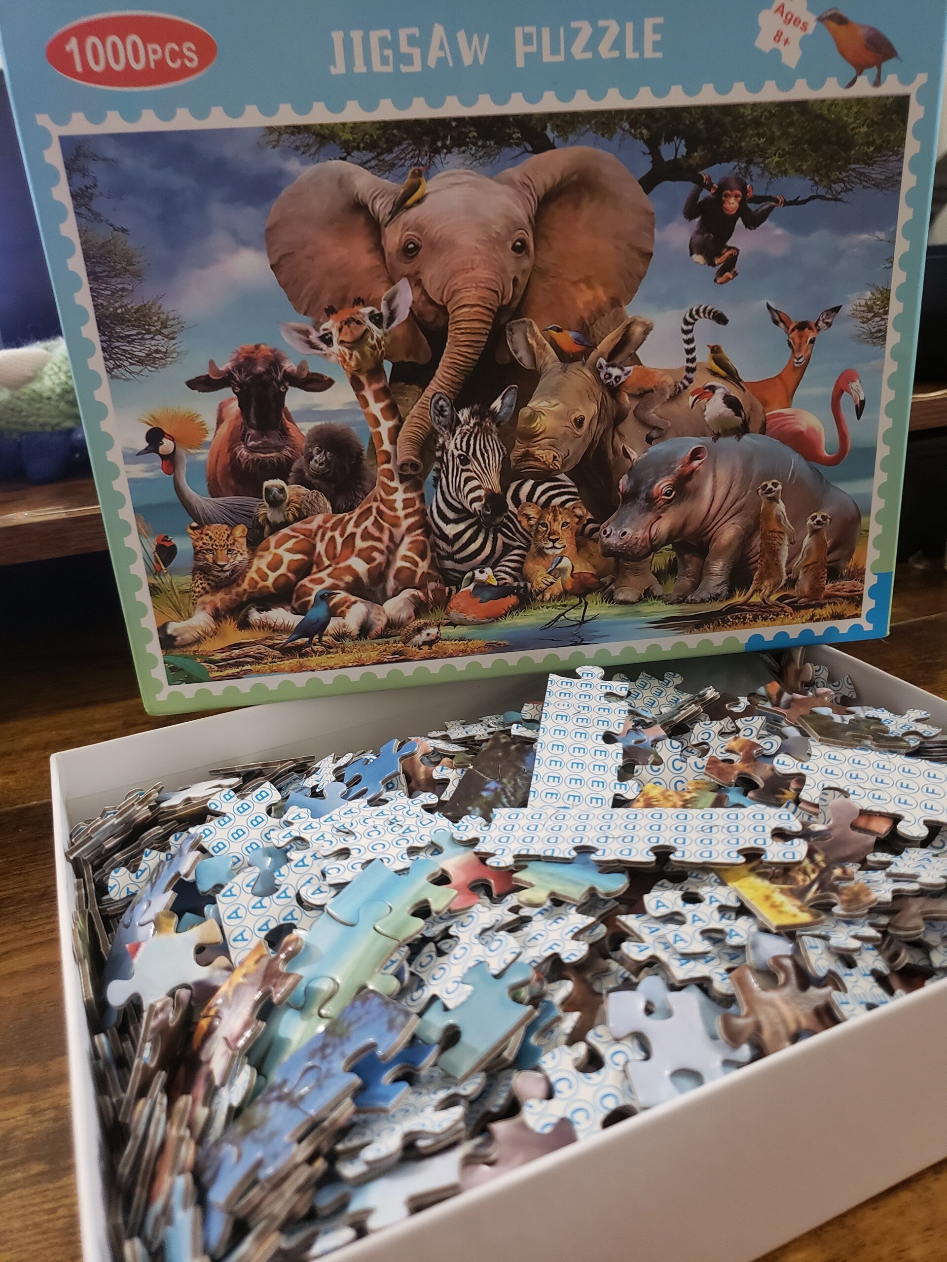 Come Explore the wild with this vibrant 1000-Piece Animal Safari Jigsaw Puzzle. Featuring a colorful array of animals, this puzzle is perfect for young adventurers. The puzzle by letters on the back makes it fun yet still challenging to compile puzzle pieces together under the correct letter. Enjoy hours of fun and learning with this engaging puzzle. Great for family time or just getting together to enjoy some down time.