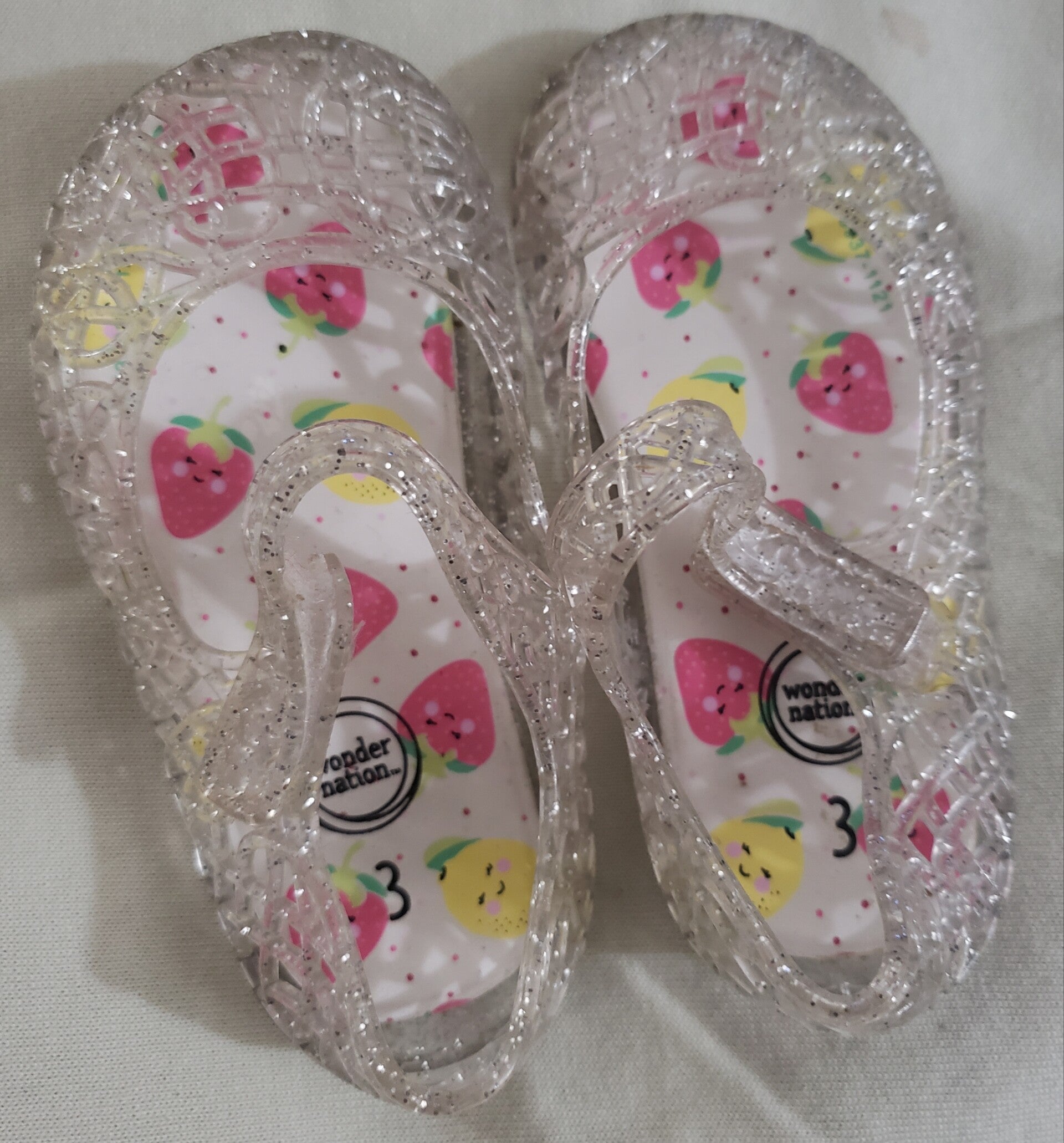 CHILD Size 3 - These lil Wonder Nation Clear & Glitter Colored Jelly's are super cute only worn a few times and make great holiday accessories goes with any attire.