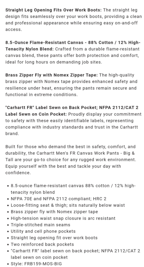Gently Use -Carhartt Flame Resistant Rugged Flex Relaxed Fit Jeans (See Details In Images)